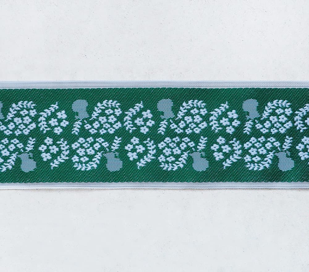 畳縁はデザインだけでなく、素材の多様性も特徴です。主に綿、麻といった天然素材から、ポリエステル、ポリプロピレンなどの化学繊維まで、様々な素材が用いられています。 作品に求める手触り、光沢感、耐久性、扱いやすさに応じて最適な素材を選べます。例えば、しなやかなポリエステルはバッグやポーチに適しており、強度のあるポリプロピレンはキーホルダーなどの小物に重宝されます。素材の違いが作品の表情を豊かにし、手にした時の感動を深めます。