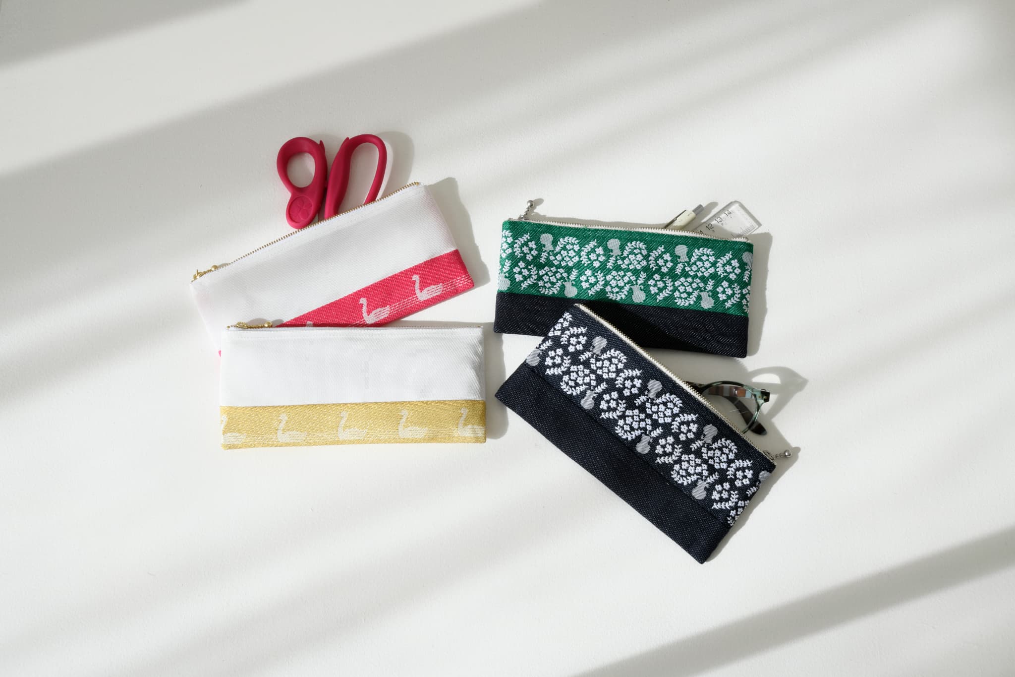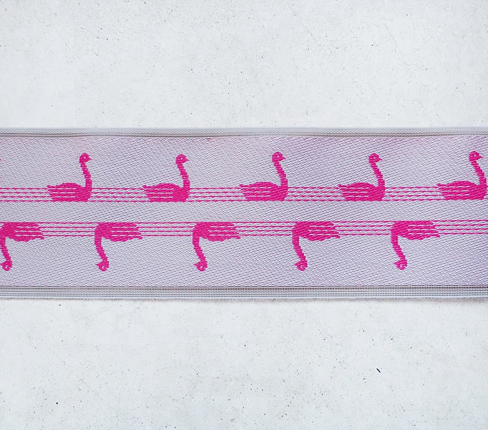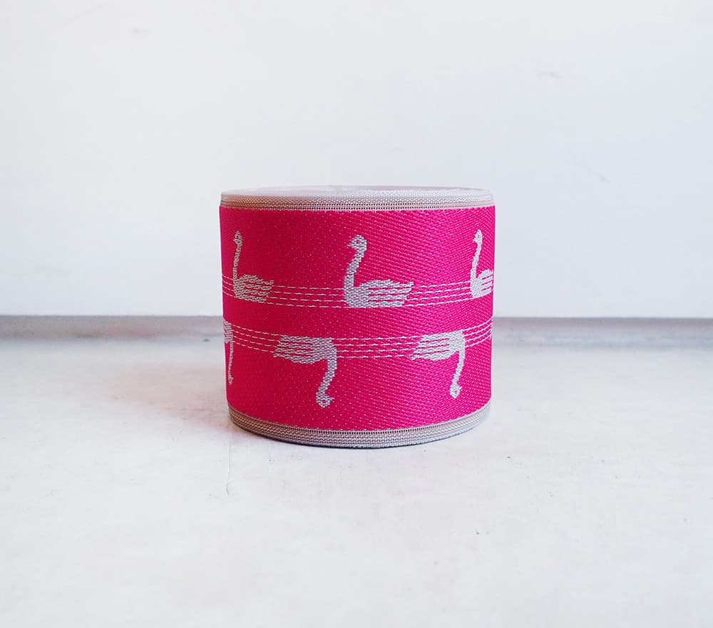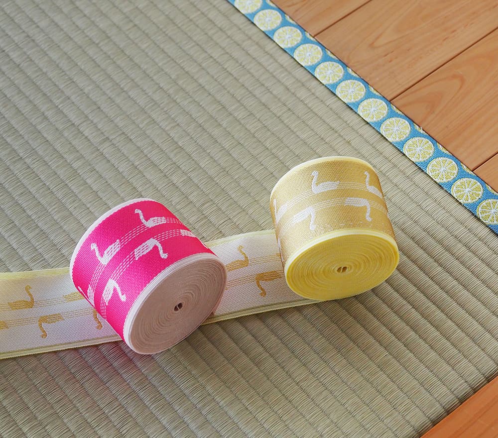 個性豊かなテキスタイルで人気のVRANAさんが手がけた、心ときめくスワン柄を畳縁に仕立てました。