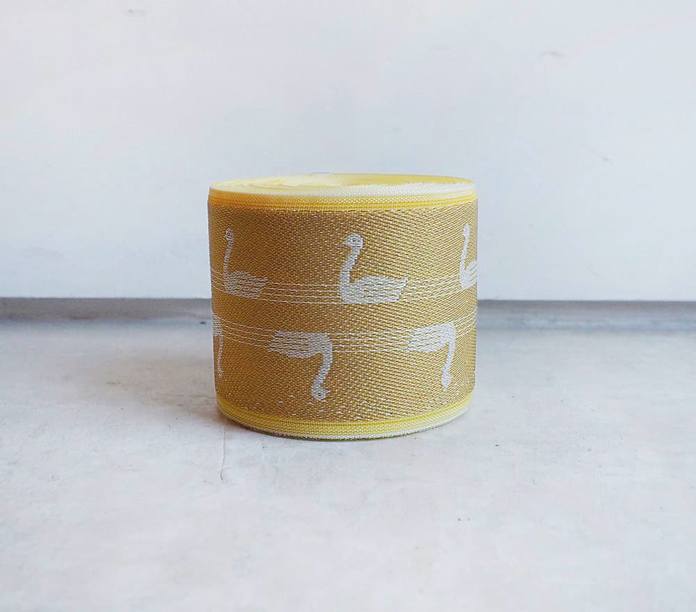 個性豊かなテキスタイルで人気のVRANAさんが手がけた、心ときめくスワン柄を畳縁に仕立てました。
