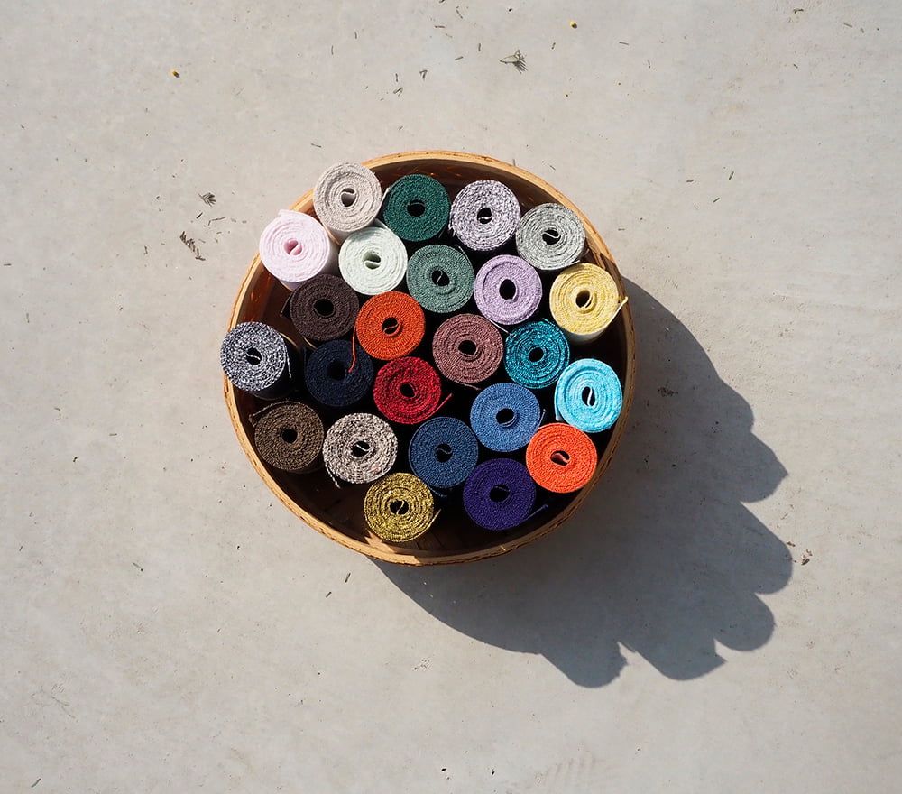 ランシリーズの畳縁1.5mをセットにしました。綿とリネンで織り上げた自然素材のやさしい畳縁です。あたたかみのある手触りと、素朴で味わい深い風合いが特徴。寒色系の色味を集めました。