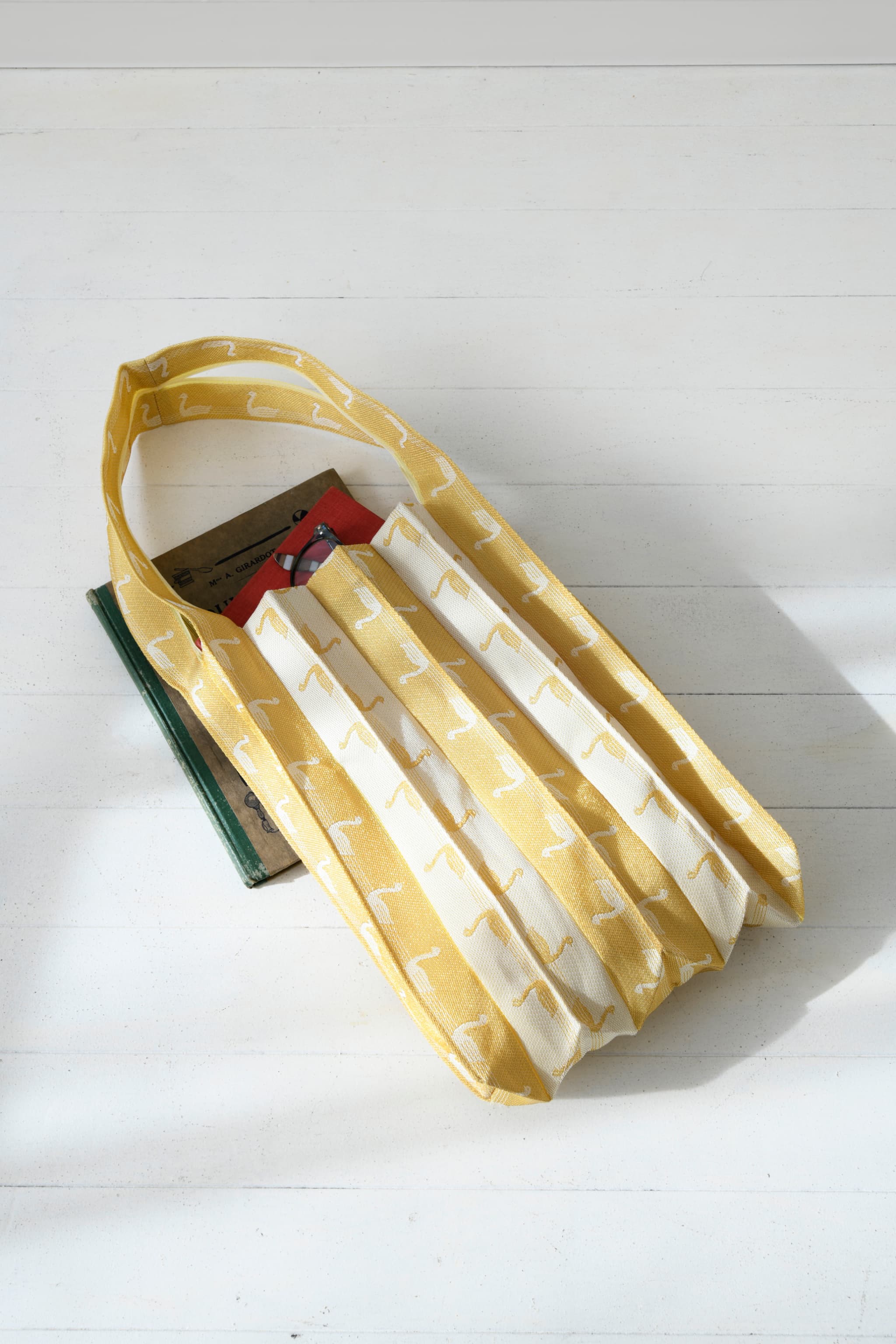 個性豊かなテキスタイルで人気のVRANAさんが手がけた、心ときめくスワン柄を畳縁に仕立てました。
