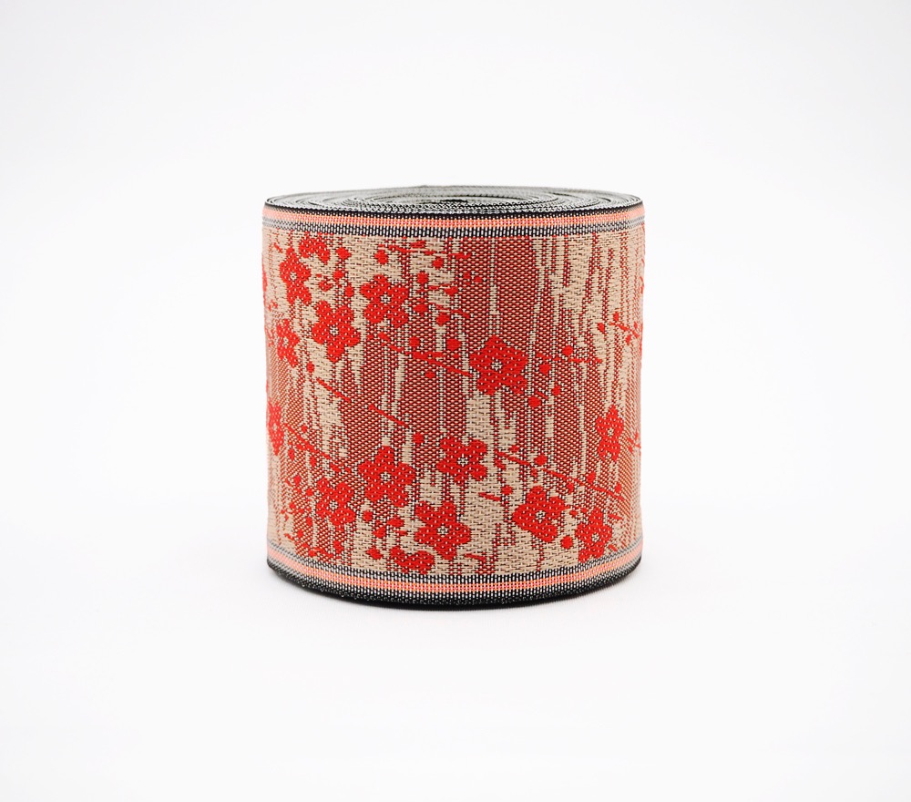 万葉の時代から愛でられた「梅」を散りばめました。織物ならではの味わいと、優雅で繊細な日本の伝統美をお楽しみください。自社工場の機織り機で、熟練の職人が丁寧に丹精を込めてつくった畳縁(たたみべり)。児島の地からお届けします。■サイズ:幅:約8cm/長さ:約10m